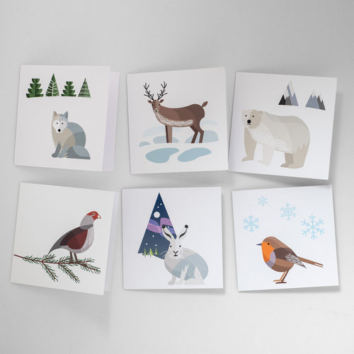 Alle sechs Tier-Weihnachtskarten, Winterkarten, innen leer
