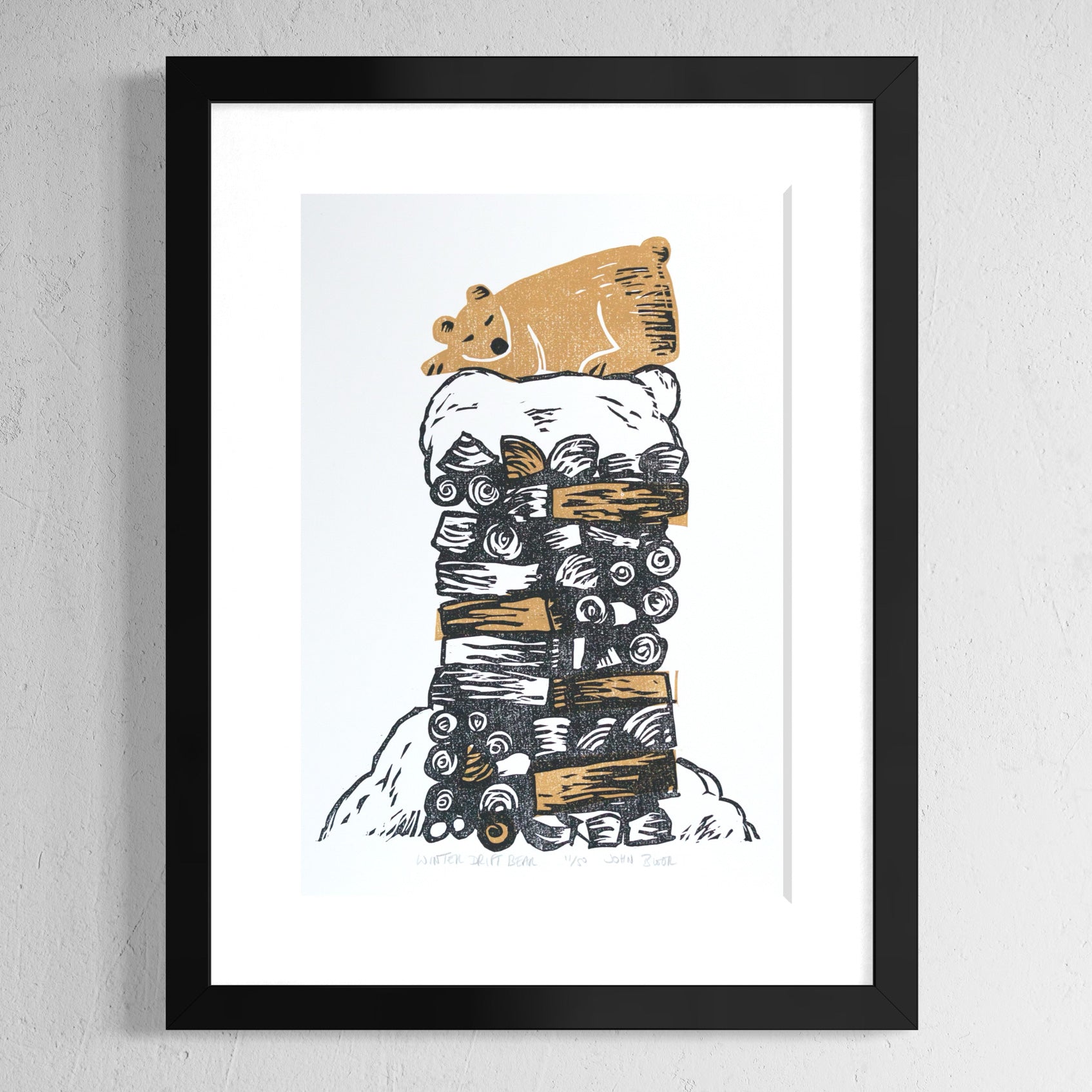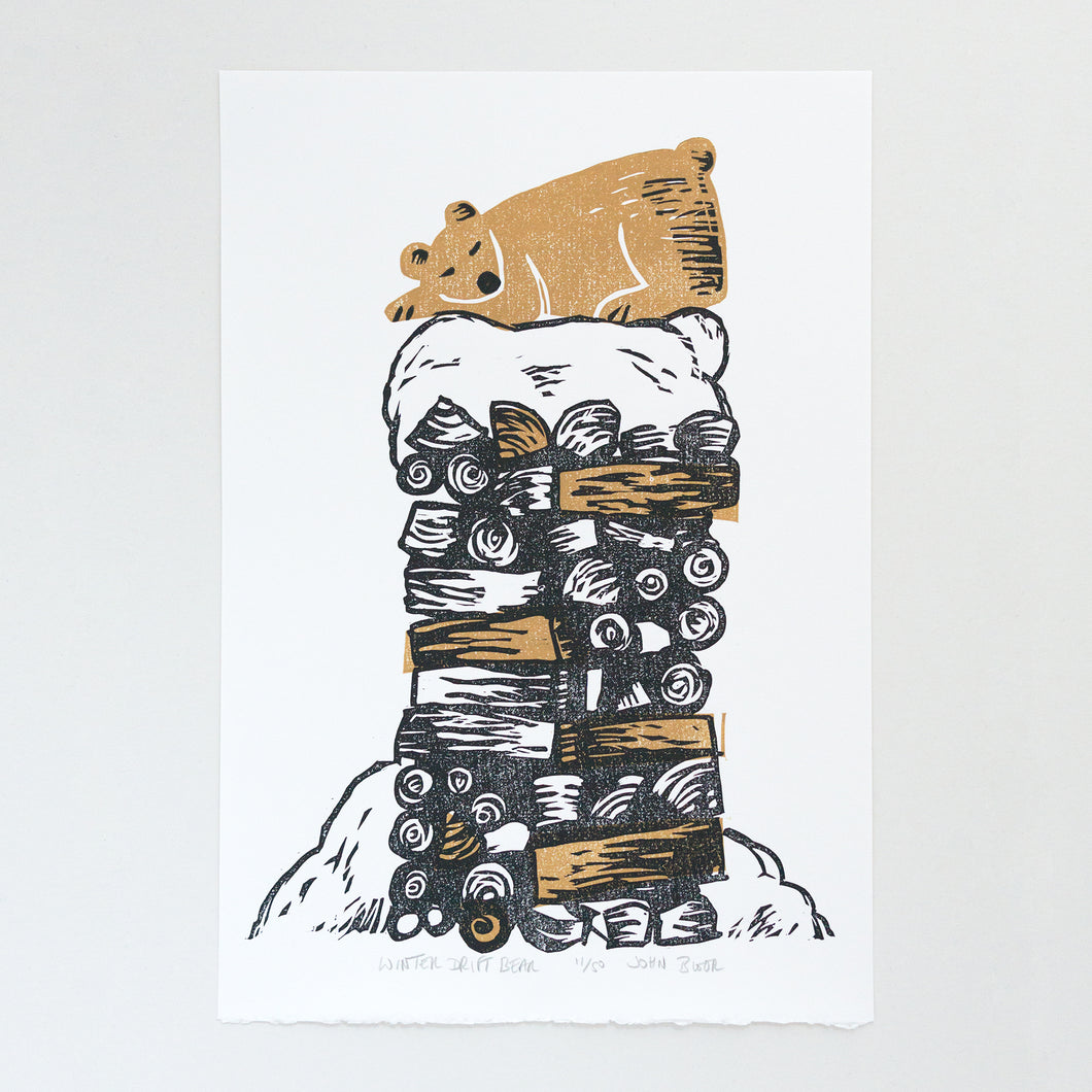 Winter Drifts Linoldruck „Bär“, limitierte Auflage