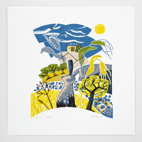 Take Flight Blue Tit linogravure et sérigraphie imprimées à la main