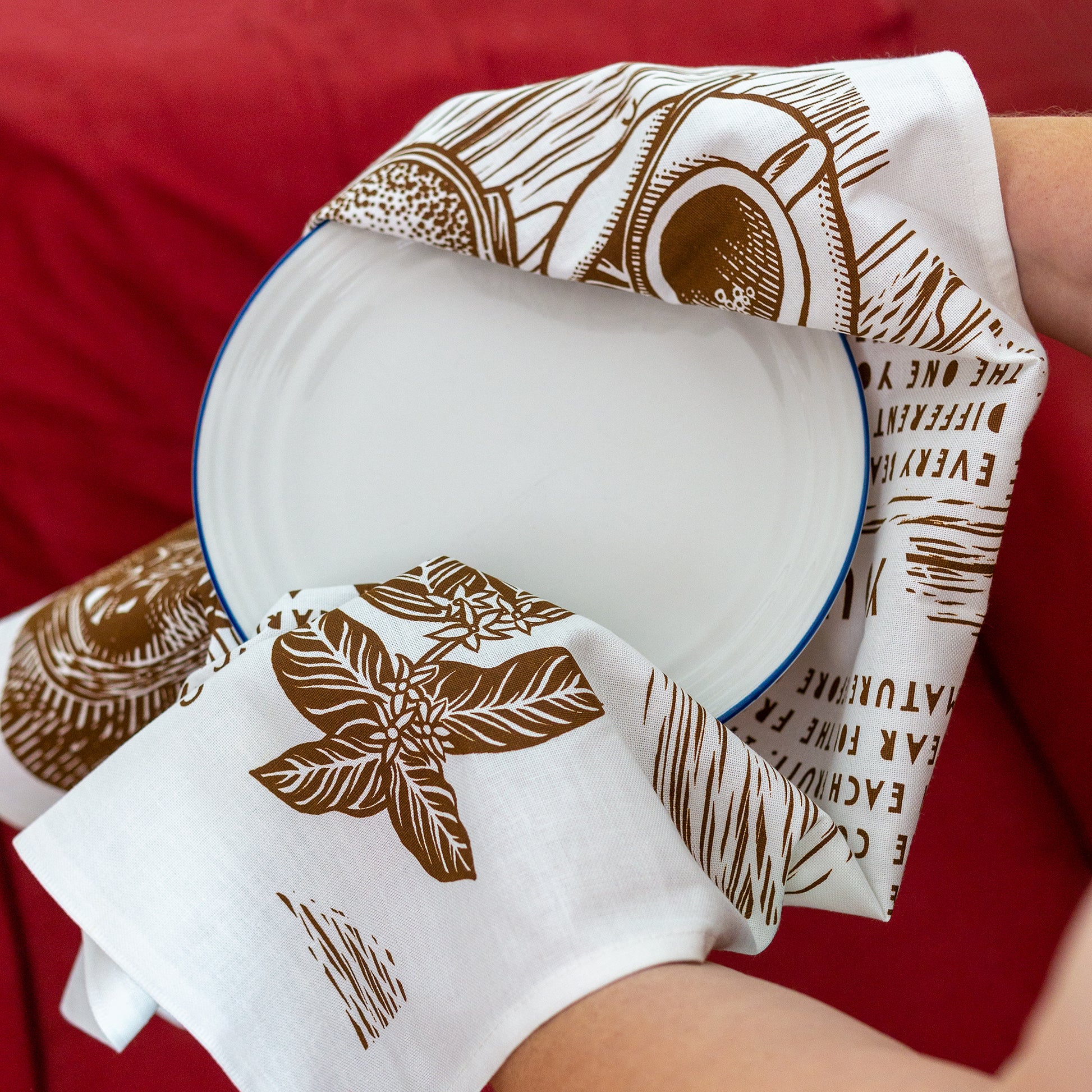 Les torchons sont imprimés sur du 100% coton.