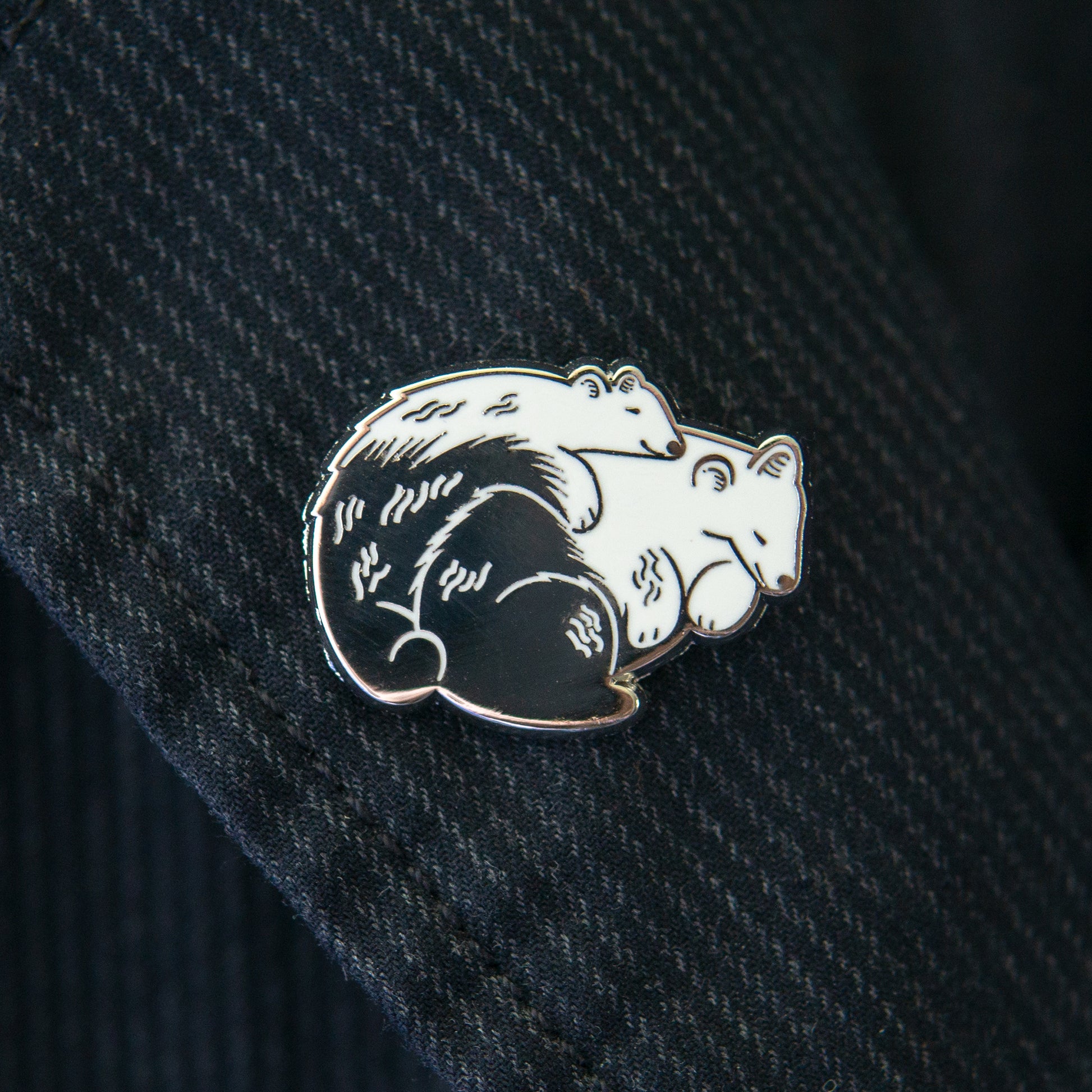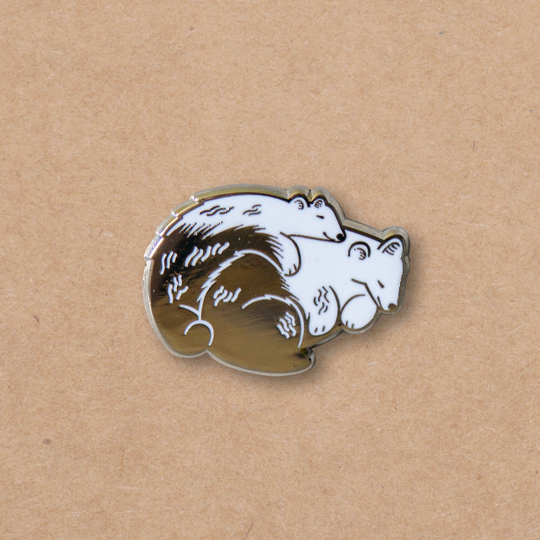 Cette épingle en émail dur « Sleeping Bears » représentant deux ours s’étreignant est prête à se frayer un chemin sur votre manteau, cardigan, chapeau ou tout autre vêtement préféré !
