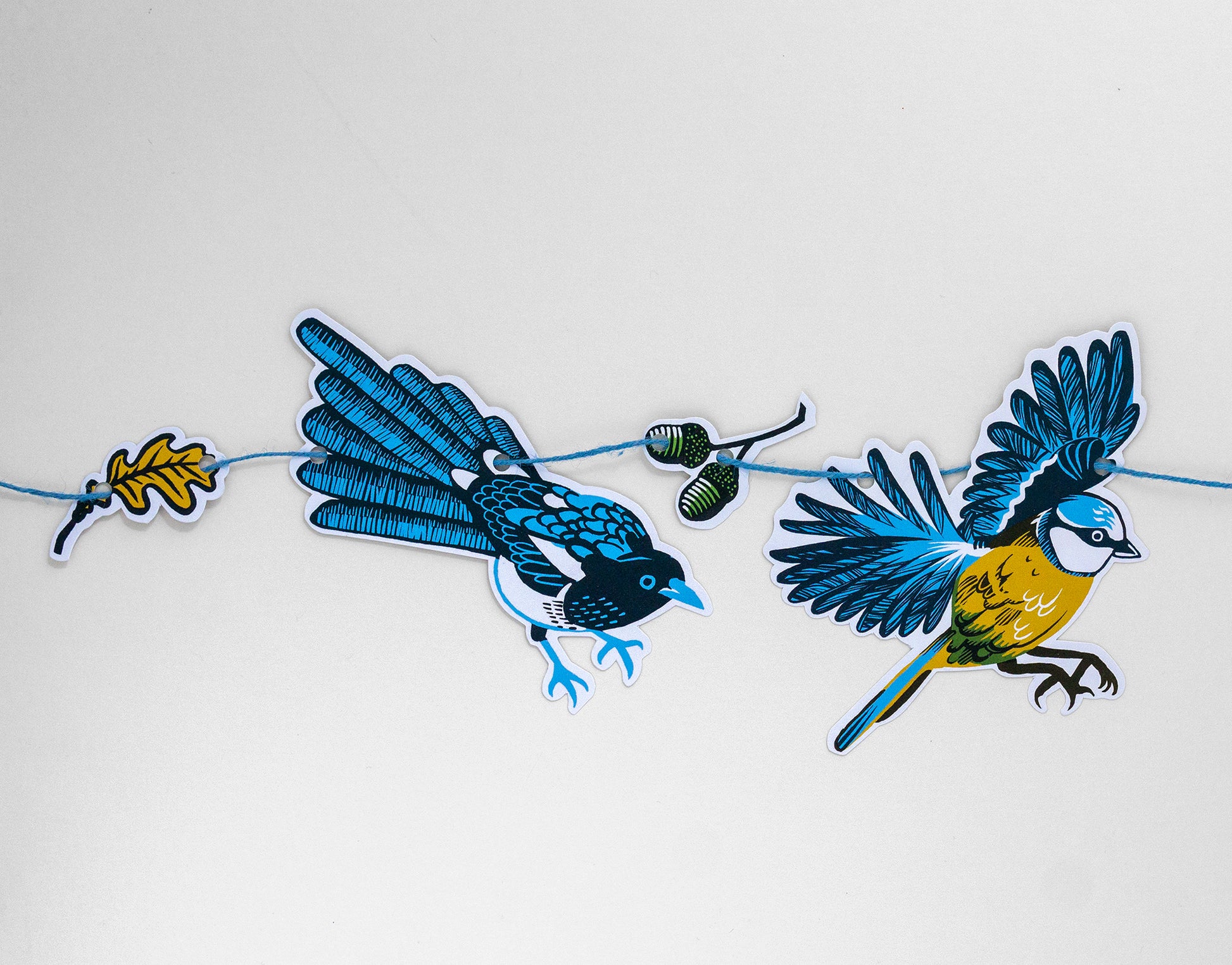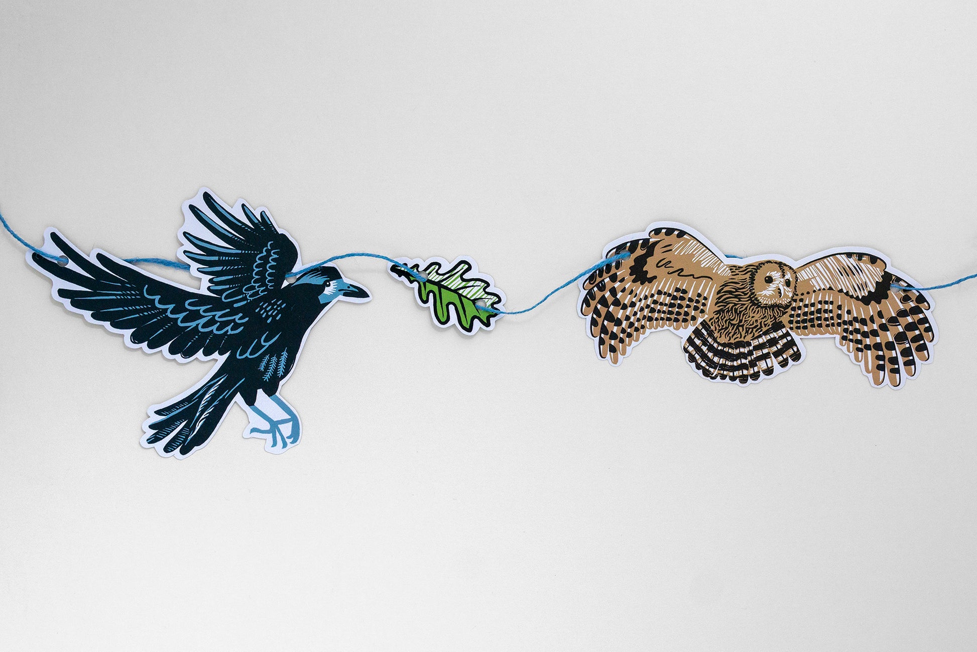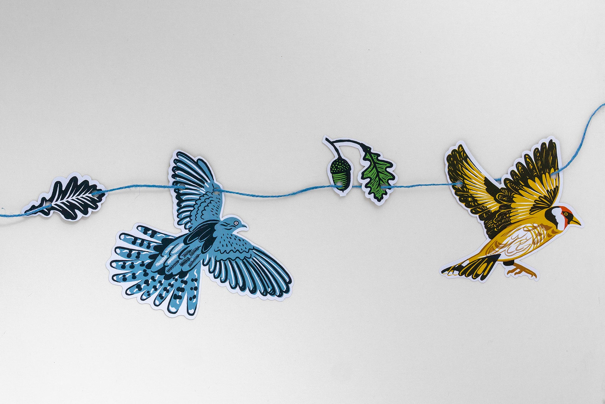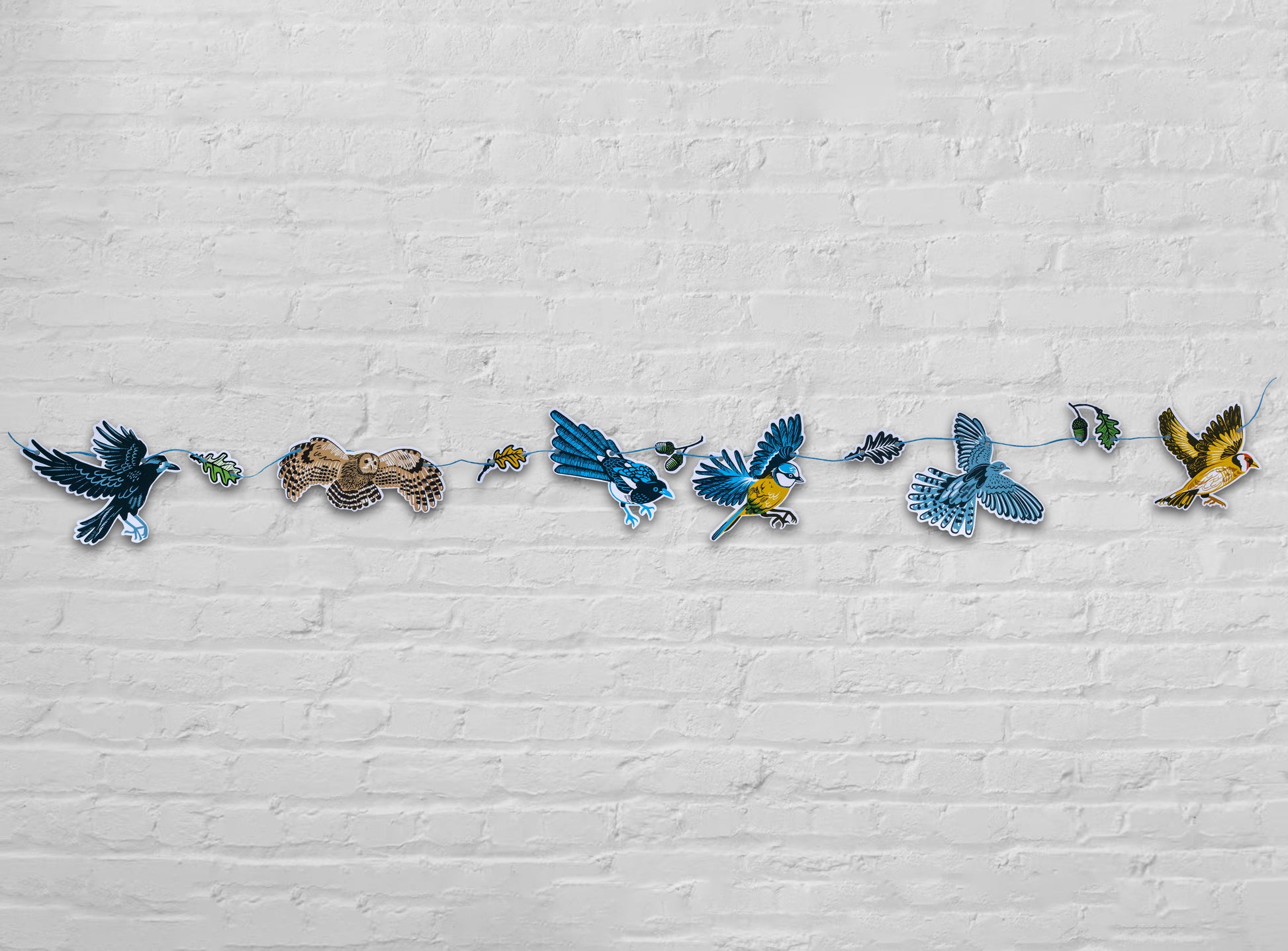 Cette guirlande fait partie d'une nouvelle série d'imprimés d'oiseaux appelée Take Flight.
