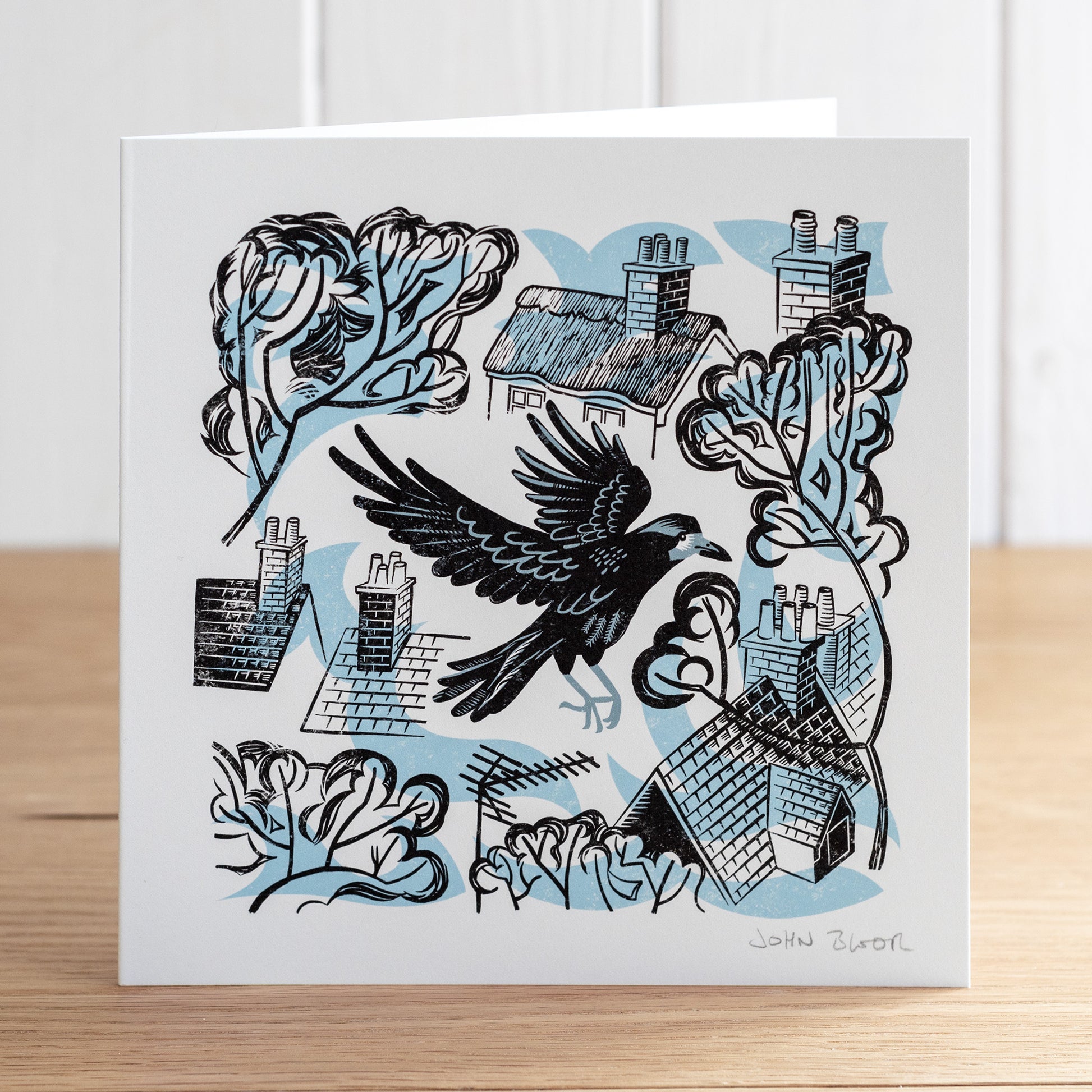 All six Take Flight greetings cards, printed onto nice uncoated 350gsm card with a Kraft envelope. Size 148x148mm. You will receive one each of Tawny Owl, Blue Tit, Goldfinch, Crow, Magpie and Cuckoo.