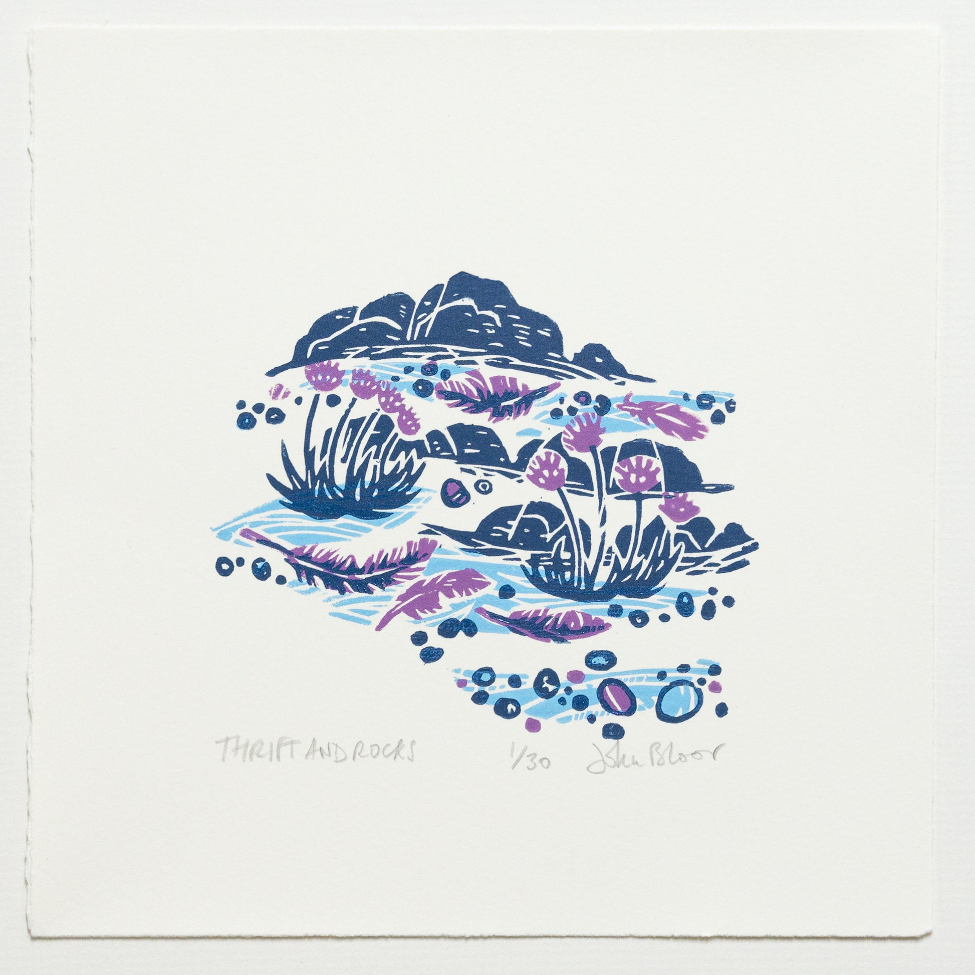 Flow and Furrow "Thrift and Rocks" unframed woodcut print