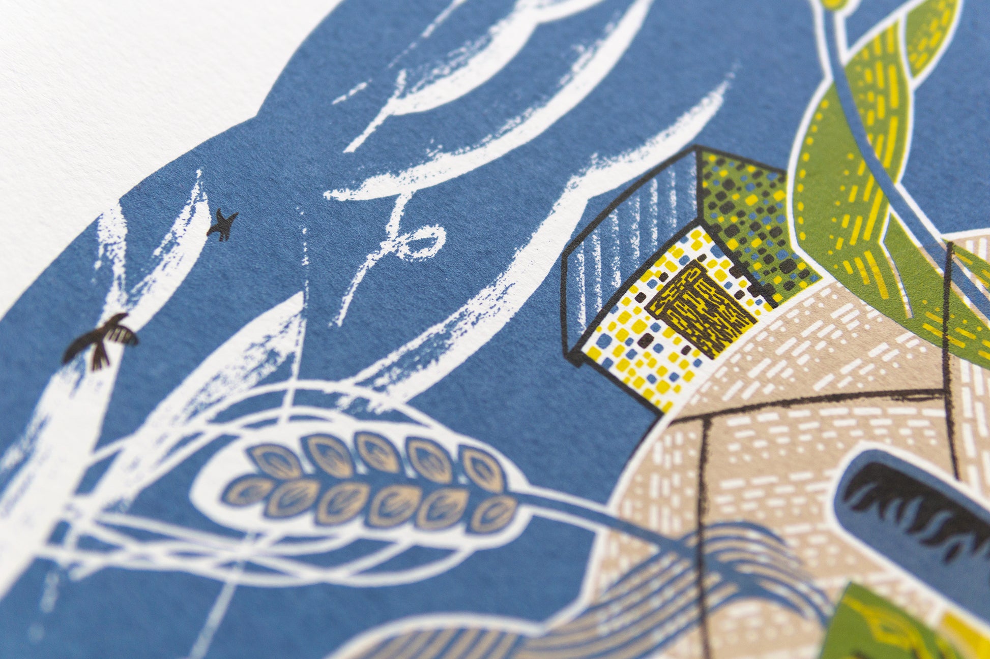 It will be sent out rolled. Please note this print is unframed and also please note that as it is hand printed, each print may vary slightly.