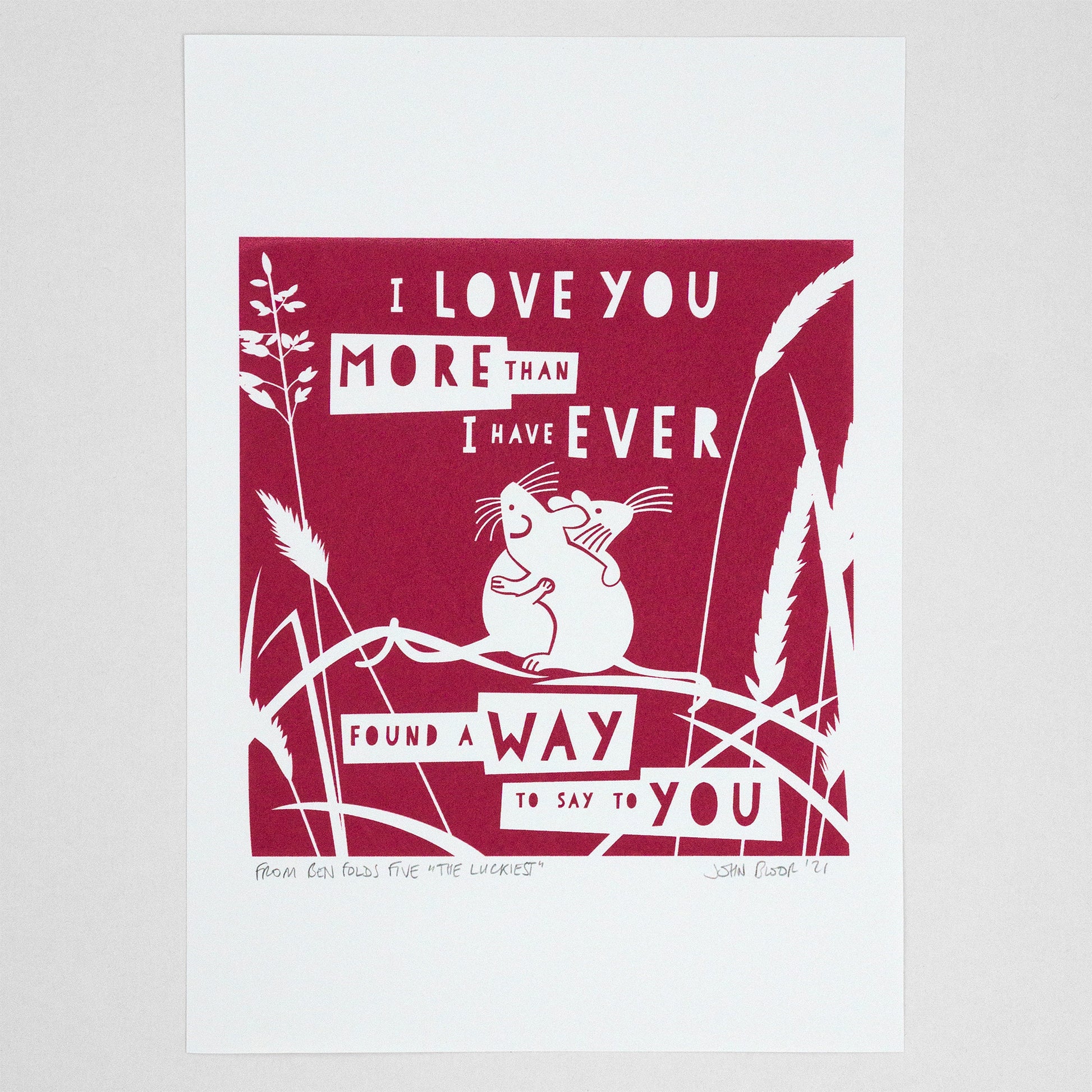 This "More Than I Have Ever Found A Way" hand pulled screen print is a quote from the song "The Luckiest" by Ben Folds Five and is an open edition. Each one is named and signed by me.