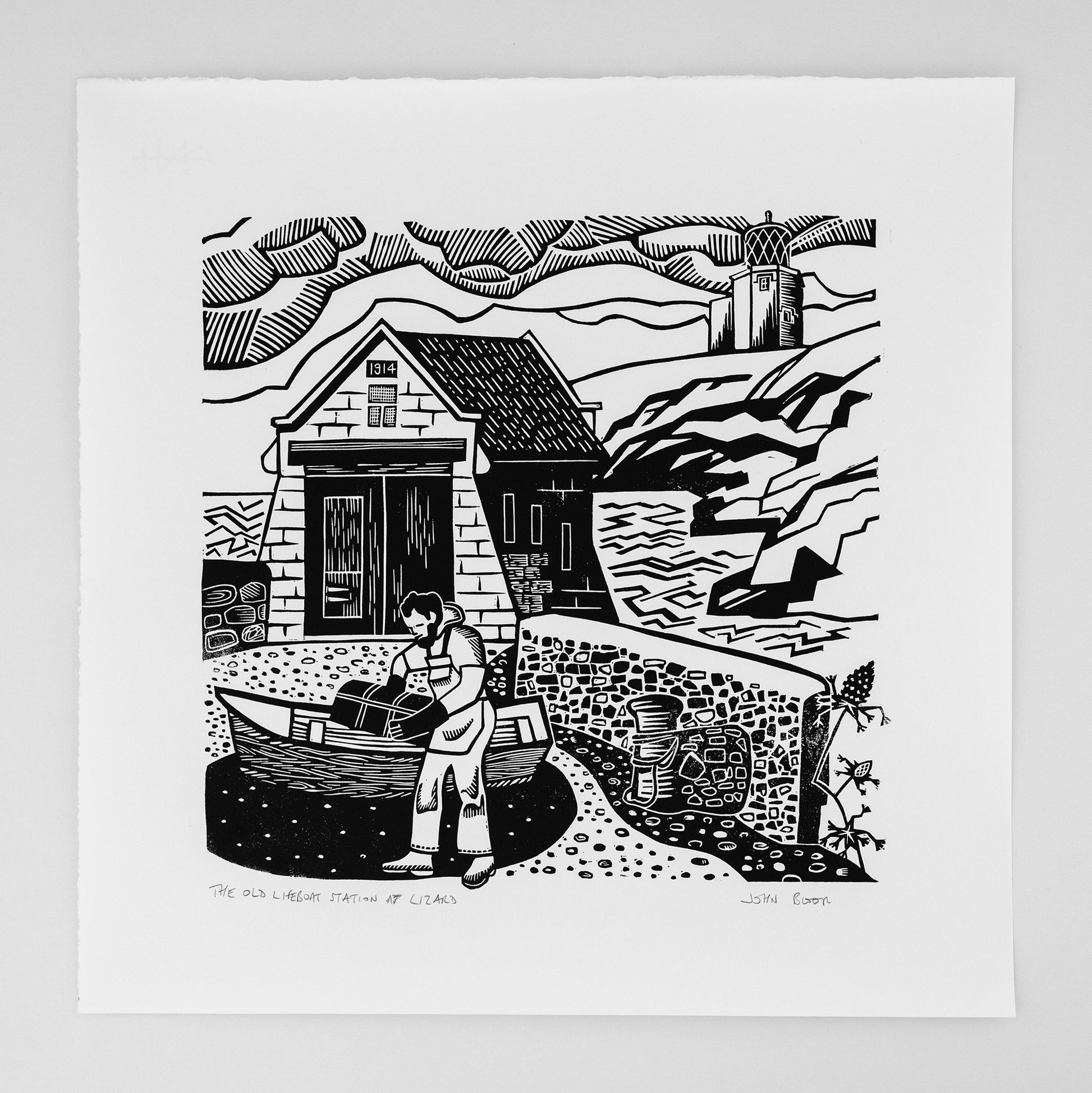 The Old Lifeboat Station at Lizard, Cornwall, unframed linocut